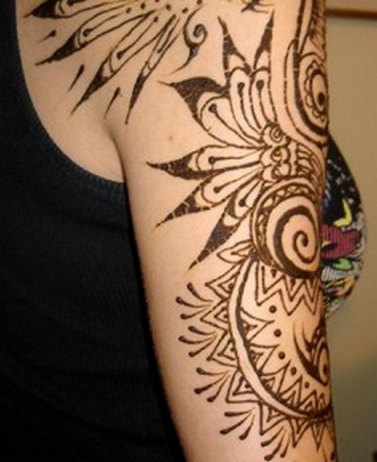 Traditional Indian designs are of representations of the sun on the palm, which, in this context, is intended to represent the hands and feet.